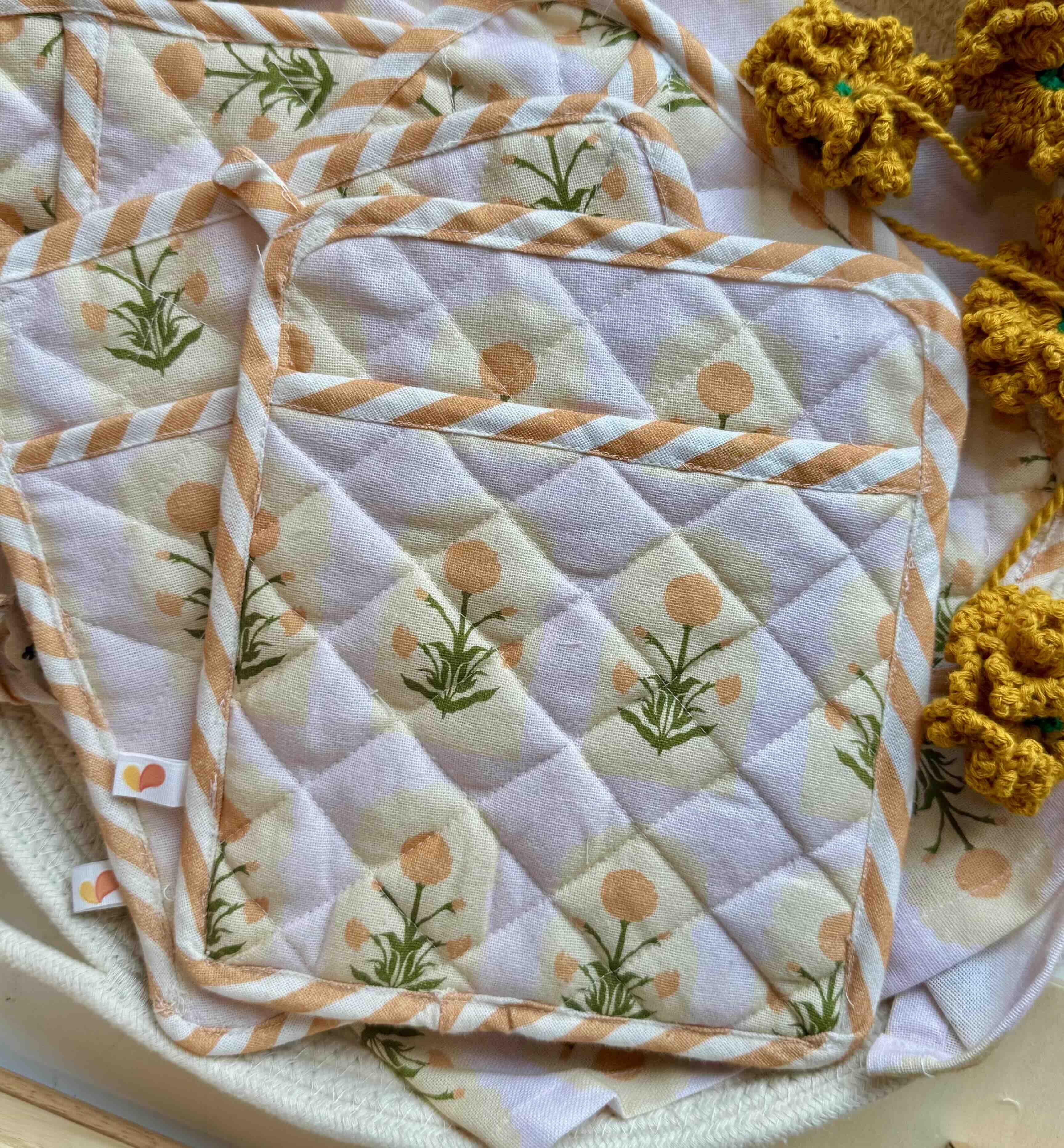 The sweetest trivet that's perfect as a potholder, or an oven mitt. Our elegant marigold motif adds sunshine to any space.